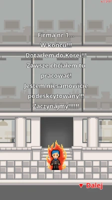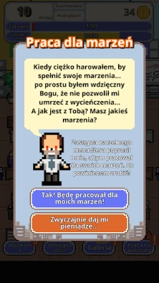W 'Nie daj się zwolnić!' wcielasz się w postać, która startuje z absolutnego zera – bez grosza przy duszy, bez znajomości i bez perspektyw. Twoim celem jest wspiąć się po korporacyjnej drabinie od najniższego szczebla praktykanta, aż po prestiżową pozycję prezesa zarządu. Każda decyzja ma znaczenie, a bezlitosny świat pracy rodem z Korei Południowej nie wybacza potknięć. Przygotuj się na ciągłe wyzwania, intrygi i presję, które wciągną Cię bez reszty. Tylko najlepsi i najbardziej zdeterminowani dotrą na szczyt, pokonując kolejne szczeble korporacyjnego piekła.