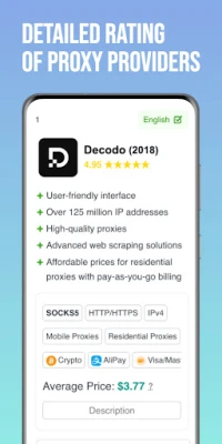 Ocena i Recenzja Dostawców Proxy to oficjalna aplikacja caproxy.com. Odkrywaj, porównuj i oceniaj dostawców proxy: residential, mobilnych, data center, ISP, SOCKS5, HTTPS, IPv4, IPv6. Wybieraj najlepsze rozwiązania do scrapingu, automatyzacji, SEO, social media i bezpieczeństwa. Podejmuj świadome decyzje szybko i pewnie.