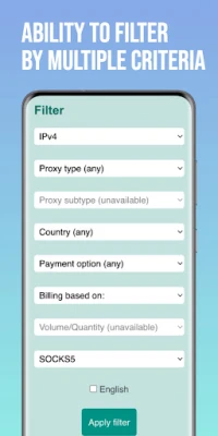 Dzięki intuicyjnym narzędziom filtrowania w aplikacji Ocena i Recenzja Dostawców Proxy, poszukiwanie idealnego proxy staje się niezwykle szybkie. Możesz precyzyjnie sortować usługi według kraju, protokołu (takiego jak SOCKS5 czy HTTPS), wersji IP (IPv4 lub IPv6), konkretnego typu czy podtypu proxy, dostępnych metod płatności, zakresu kosztów i wymaganej ilości. Ta funkcjonalność pozwala w kilka chwil zidentyfikować dostawcę spełniającego wszystkie Twoje kryteria, eliminując czasochłonne przeglądanie dziesiątek stron internetowych i gwarantując trafny wybór.