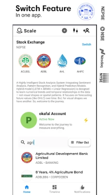 Przemierzanie złożonego świata giełdy staje się prostsze dzięki Scale – aplikacji, która zmienia strumień danych w klarowne wskazówki. Od cen w czasie rzeczywistym, wolumenu i fundamentów spółek na NEPSE, po przyszłe rozszerzenie na NSE, NYSE/NASDAQ i globalne rynki, Scale dostarcza pełen obraz sytuacji. Zamiast męczących wykresów, otrzymujesz proste sygnały Kupuj/Sprzedaj/Czekaj, generowane przez zaawansowane algorytmy, co pozwala Ci zrozumieć kierunek rynku i szybko wychwycić nadchodzące szanse.