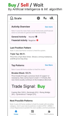 Scale łączy inteligentne modele AI z danymi rynkowymi, oferując jasne sygnały Kupuj/Sprzedaj/Czekaj. Zapewnia precyzję i klarowność w dynamicznym świecie giełdy. Wspiera pewne decyzje inwestycyjne dzięki transparentnej inteligencji. Najdokładniejsze rozpoznawanie wzorców świecowych na urządzeniach mobilnych, w jednej szybkiej aplikacji.